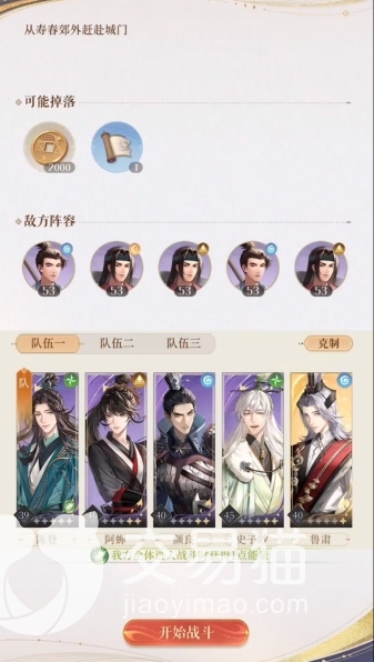 在阵容选择方面,鲁肃、颜良必上,外带一回蓝(陈登)一输出(阿蝉)一治疗(史子眇)即可。开战后,由于敌人的攻击普遍比较高,因而颜良最好只用普攻为队伍套盾,不要上技能去嘲讽敌人,否则很容易就会扛不住。至于输出角色则全力先解决血量较低的水属怪,血量高的那个水属怪交给鲁肃去劝退。待两个水属怪都退场后,剩下的三个小怪只要正常打就能过了。