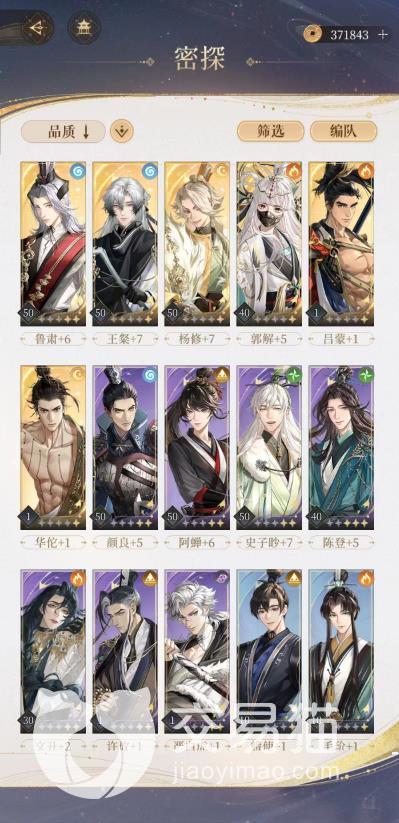 隐密密探是游戏内获得几率最高的密探了,同样,隐密密探的种类也是最多的,除了游戏女主广陵王的绣衣楼内的成员外,甚至还有绣衣楼内的小宠物,小狗飞云和幼鸢绣球。虽然他们的战斗强度和绝密机密密探相比没有那么大,但是玩家可以在名册中给他们送礼,解锁他们的各种秘闻故事,感受到在三国架空这一大背景下小人物的悲欢离合。