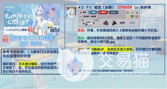 以上就是关于蔚蓝档案知世泳装有什么特点的相关内容介绍,在了解了这一个泳装的特点以后,也让很多的玩家都特别的期待,毕竟这个泳装的确是非常漂亮的,虽然也有着一些不足之处,但是总体来说还是拥有着很多特点的。