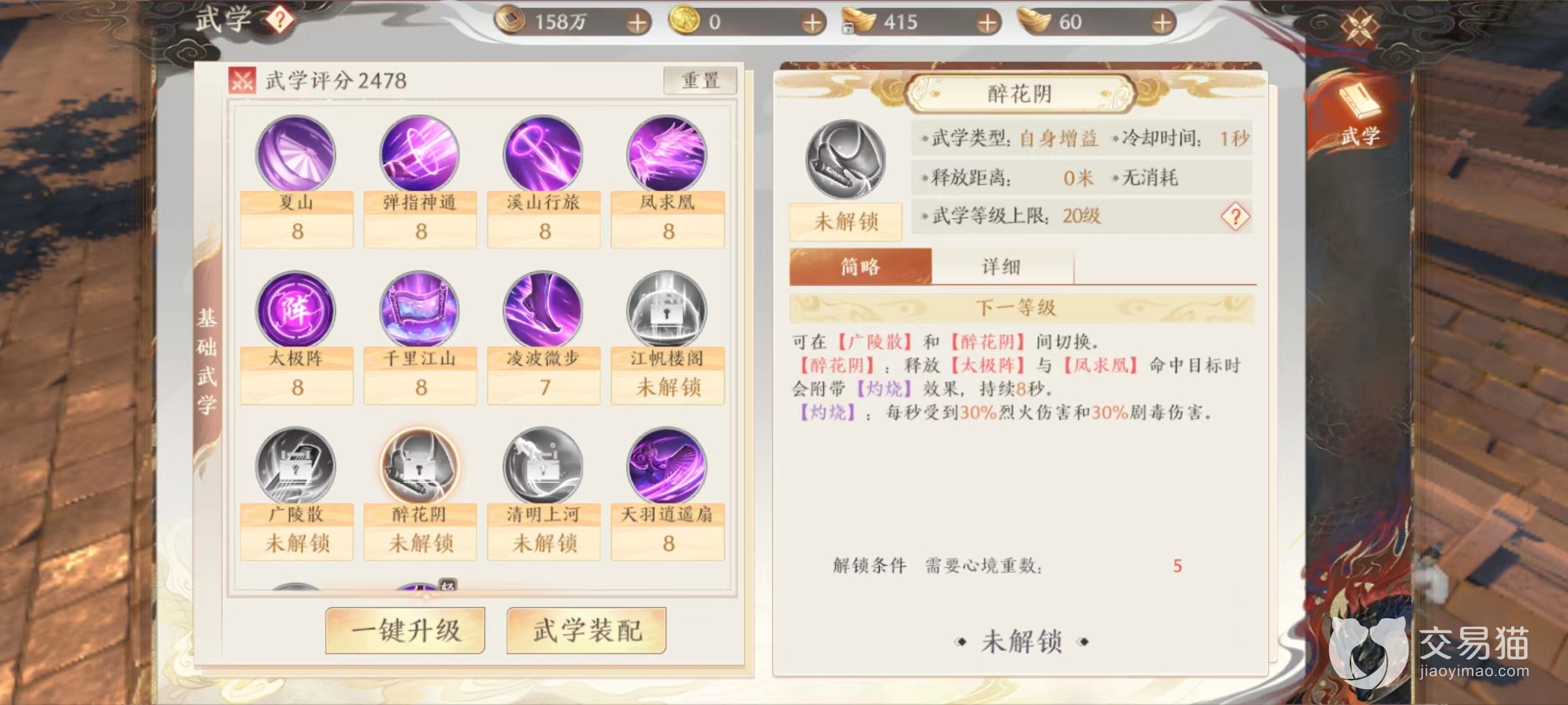 在刷怪的时候肯定是开启自动和挂机,所以在战斗之前需要先对挂机进行一些设定,只有一切做好准备才能提高效率。首先是技能设置方面优先选择几大群攻技能,包括凤求凰,天羽逍遥扇,千里江山和太极阵等,这些群伤类是刷怪基础,其他单体伤害作为补充。而后是在姿态选择上一定要切换到醉花阴,只有在这一姿态下才能附加额外灼烧,烈火伤害加上剧毒伤害也很可观。广陵散仅仅是能使自身免疫定身和减速,除了PK没有其他用途。