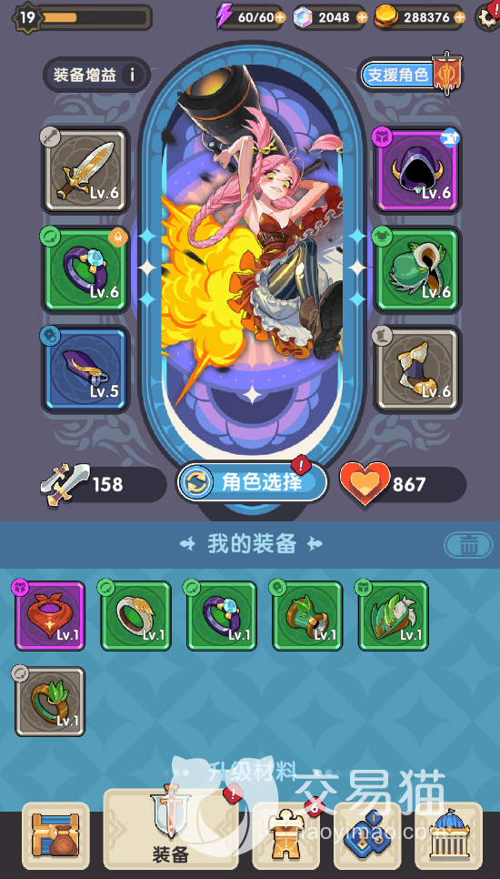 当成功获得宝箱装备后,可以为角色穿戴装备,也可以分解装备,用于升级战斗力更强级别更高的装备。