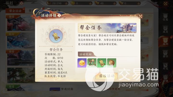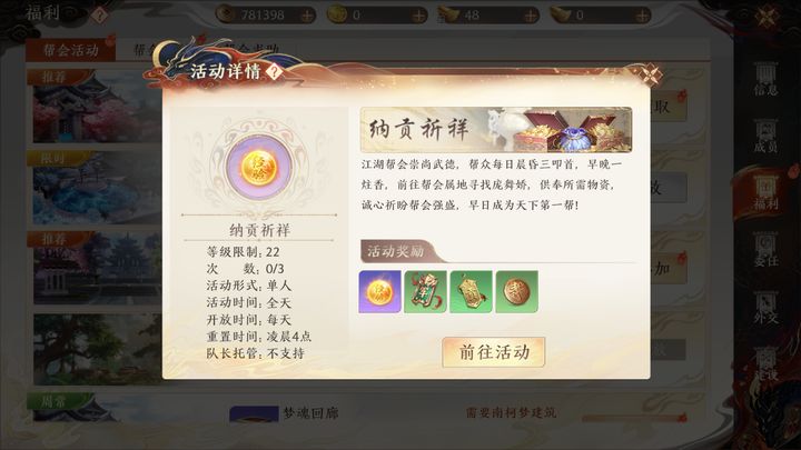 战斗场景在逐鹿谷,玩家们首先享受一波经验雨的福利,快速累积不少经验。战斗开始,大家要完成两项任务——抢占资源点和镖车。某一帮派率先获得三千资源点,轻松赢得胜利。双方都没有达到三千资源点,资源点高的一方获得胜利。两帮派资源点相同,只能获得失败的奖励。