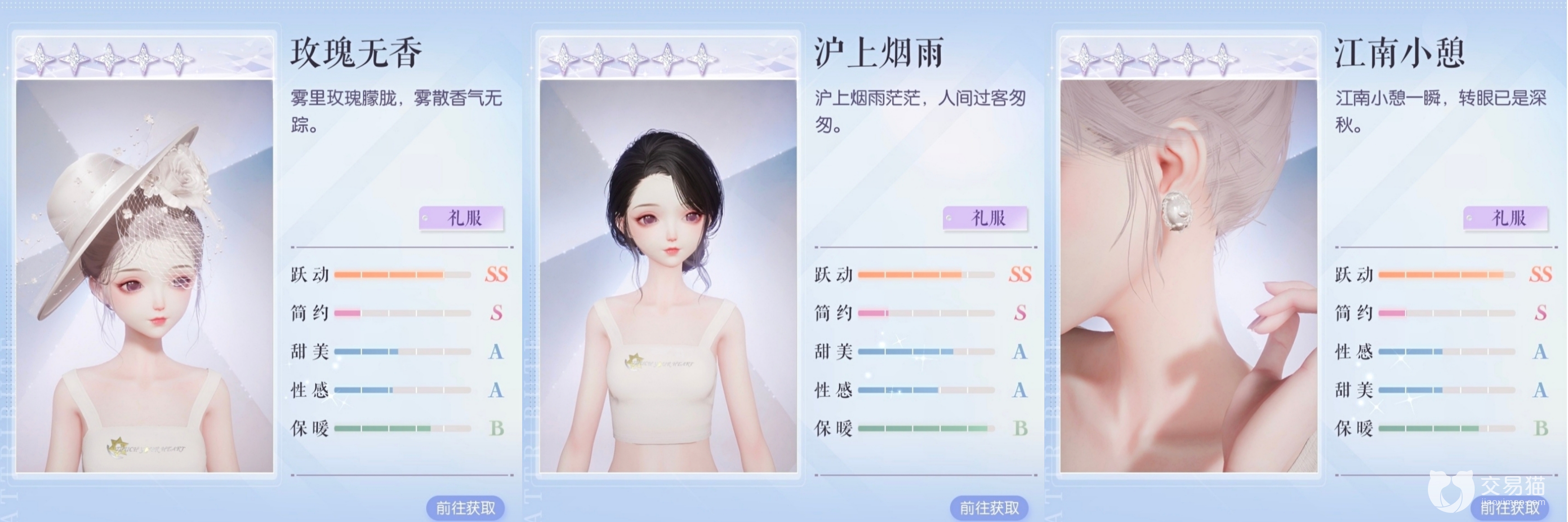 五星礼服“金陵遗梦”是通过限时追光活动—风华双梦中抽取的,目前“金陵遗梦”的抽取时间已过,还没有获得“金陵遗梦”的小伙伴只能等一等返场,或是收个其他玩家的号。虽然整套都是纯白色,但采用了不同质感的面料,成品给人感觉层次非常丰富。