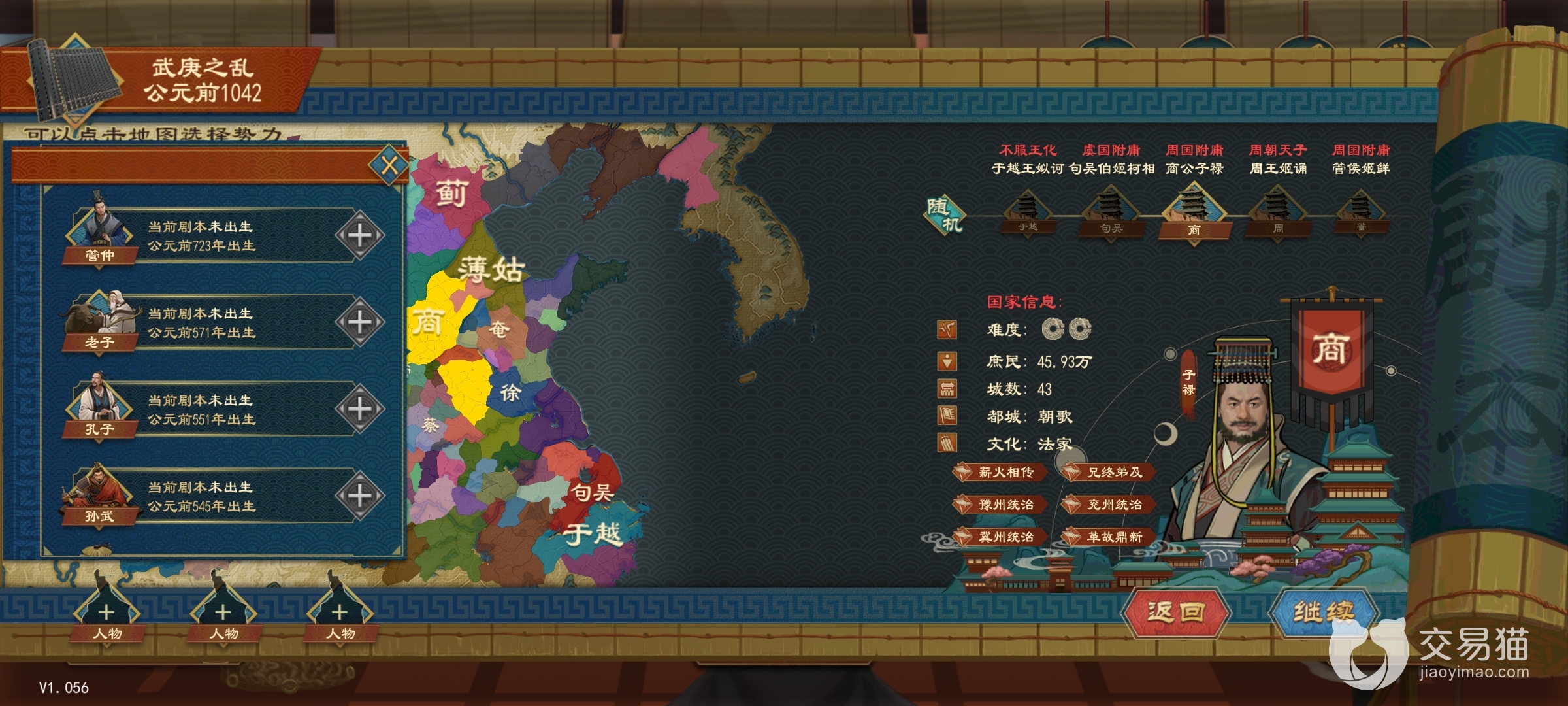 不同的剧本的年代不同,如果选择的人物在剧本出生之前,这个人物有可能无效。比如武庚之乱的剧本是公元前1042年,许行实在公元前372年出生,中间差了将近700年,需要推演到他出生的时间才会等到他来投奔玩家。