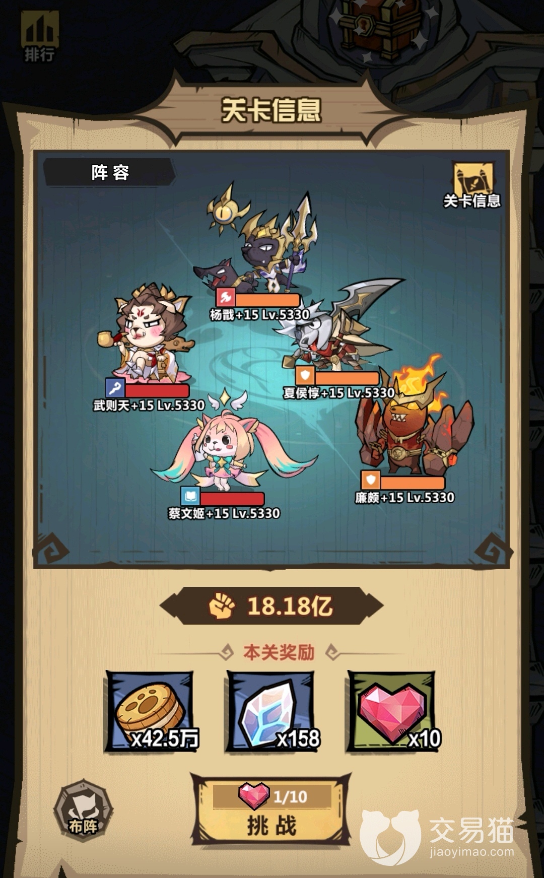 在这个阵容中,曹操是主C位置,放在前排进行输出,而孙悟空则是一反常态,让它来压血线进行收割小怪,同时作为副C,增加己方团队的输出收益,让己方队伍尽量在前期的时候就能打出比较高的伤害来。太乙真人这种万金油的辅助是必须得带上的,它可以为团队进行增益,同时充当奶妈,来回复己方阵容的血量,玩家可以给太乙真人多点神器与玩具,因为它虽然只是个辅助,但本身的输出伤害也还算可以,因此如果在与BOSS进行对抗的时候,倒是可以让它在后排也多多进行输出,说不定还能打一波爆发。