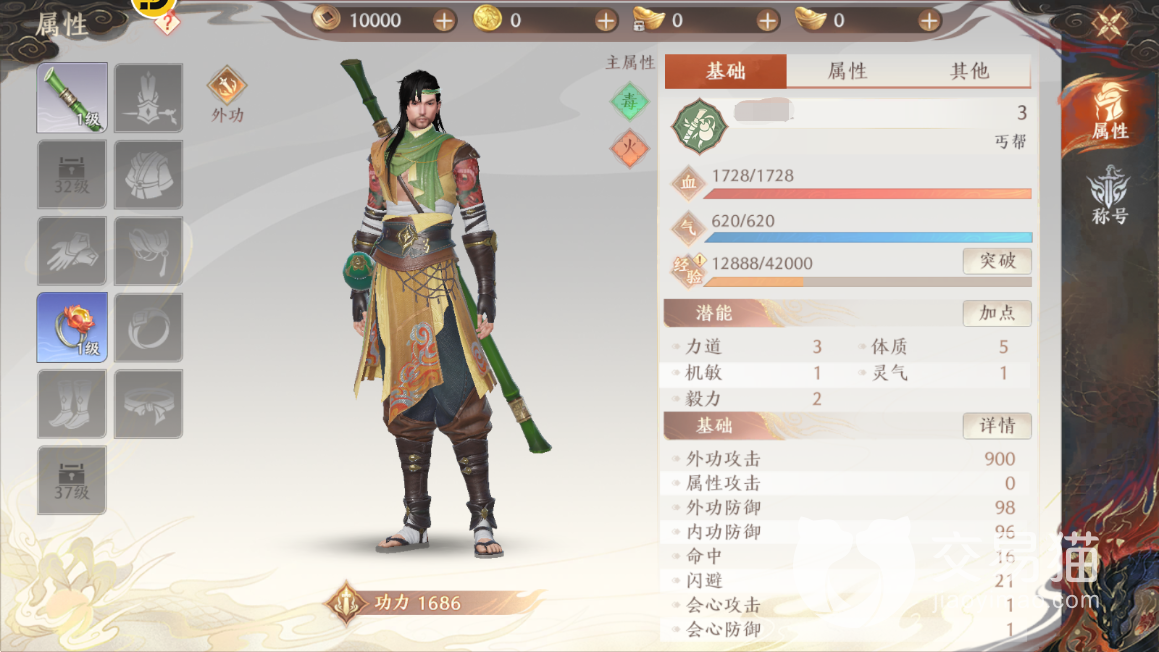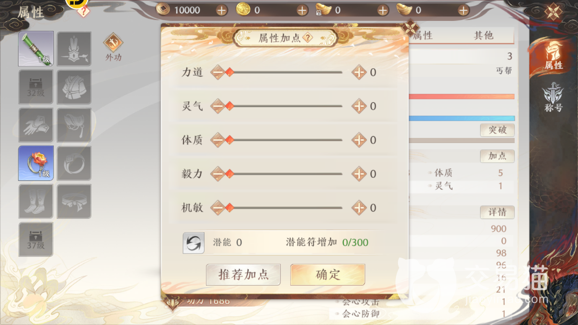 这样可以一边发挥丐帮的长处,让他的血量厚到敌人打不动,也可以弥补一下丐帮的缺陷,让他至于在上面一点躲避的能力的都没有,但是这个方式是要跟大家后期的发展目标一致才可以,要是大家想走其他的攻击方式也可以点其他的属性哦。