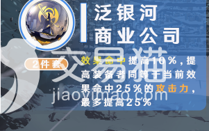 另外两件套可以选择泛银河,这一套遗器其实属于两件套,但也有着超强的作用和能力,命中效果可提升10%,作为一个辅助角色,在团战的过程当中提高命中率,对于其他玩家来说有着众多的优势。命中之后还可提高25%的攻击力。