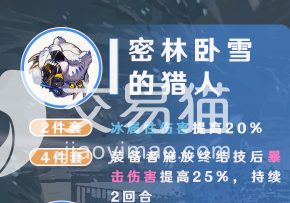 选择遗器时,一定要结合角色的各方面的特点,其中四件套可以选择密林卧雪,这一套装备对于冰属性角色特别合适,不仅可以提高相应的属性伤害,同时也能增加防御能力,装备该四件套之后,整个队伍伤害也会随之增加。