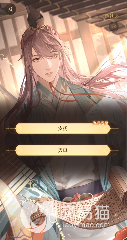 上袁基马车的时候有“安抚”与“灭口”选择,由于袁基是故意让女主上车,所以选择“灭口”也不会真动手,两个选项可解锁不同的CG图。