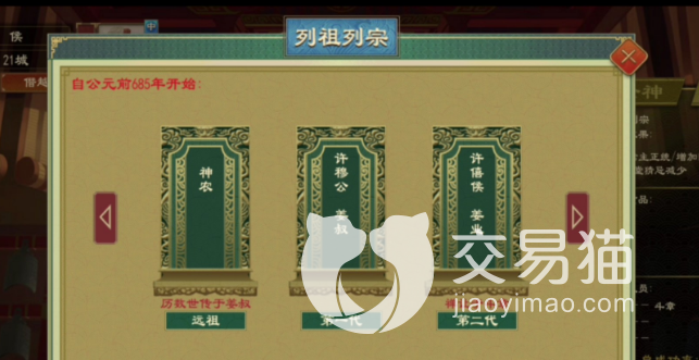 另外也可以维护正统值,玩家需要去拜祖,在城池里找庙宇,就能够看到选项,每年都能够去祭拜,去一次可以提高25的正统值,当数值满额就会把复辟压制下去。