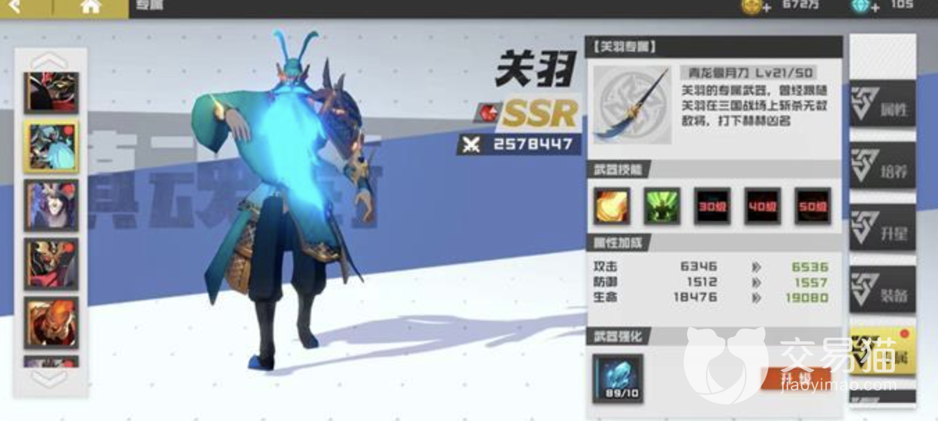 需要注意的是,在游戏中只有冰系的刘羽禅才能召唤我们的关二爷, 因为选择这个角色的玩家本身的攻击技能就是以冰系为主,加上关二爷的强势助阵简直如虎添翼。另外在游戏中使用关羽融合+绝技的玩法,玩家的攻击力就可以和关二爷的攻击力叠加,达到原来数值的45%+200左右。