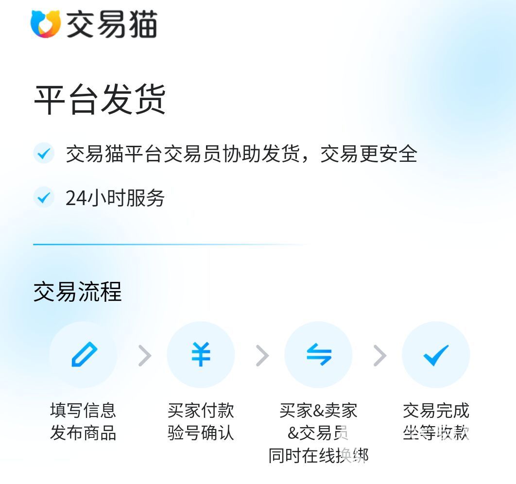 有的小伙伴还会担心自己的账号出售起来会不会很麻烦?小编认为,大家的这种担心在交易猫上可以完全打消。正好出售到最后收款的整个流程只需要四步就可以完成,而且每个步骤都会有这个平台上面的专业客服进行对接,如果在过程中出现了问题,客服会随时与我们进行沟通,并帮我们一一进行解决。