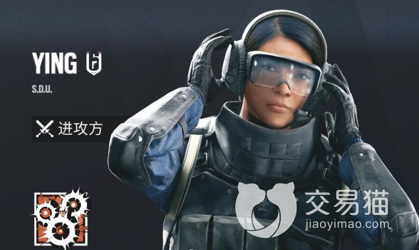 YING属进攻方的主攻手,在游戏中也被玩家们戏称为“那个女人”,她拥有后坐力最弱最好用的主武器T-95 LSW轻机枪,虽然2甲2速的面板中规中矩,但是其技能特殊闪光弹“烛光”拥有较好的进攻能力,手榴弹可以暂时眩晕敌人,并且非致命性伤害也能避免玩家误伤,进攻方需要装配护目镜和耳罩,这样一来部署在墙面或者地板上的“烛光”装置可以为进攻方提供很大的战术优势。