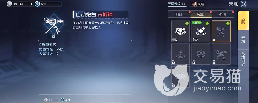玩家首先要了解的是,并不是一进入到游戏中,就能解锁这个技能,需要玩家先将自己的天赋等级升到五级,才能解锁这个装置,但是在解锁这个装置之后,也并不能马上使用,只有在特定的场景里才能使用。