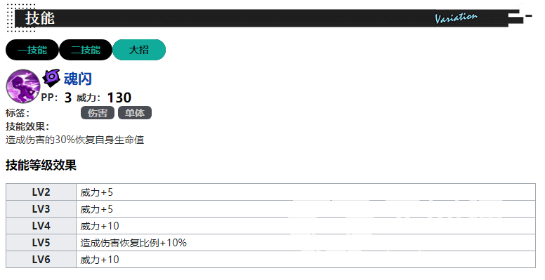 索比拉特的大招魂闪,技能效果是造成伤害的30%回复自身生命值,技能等级最高6级,达到6级之后威力增加30点。