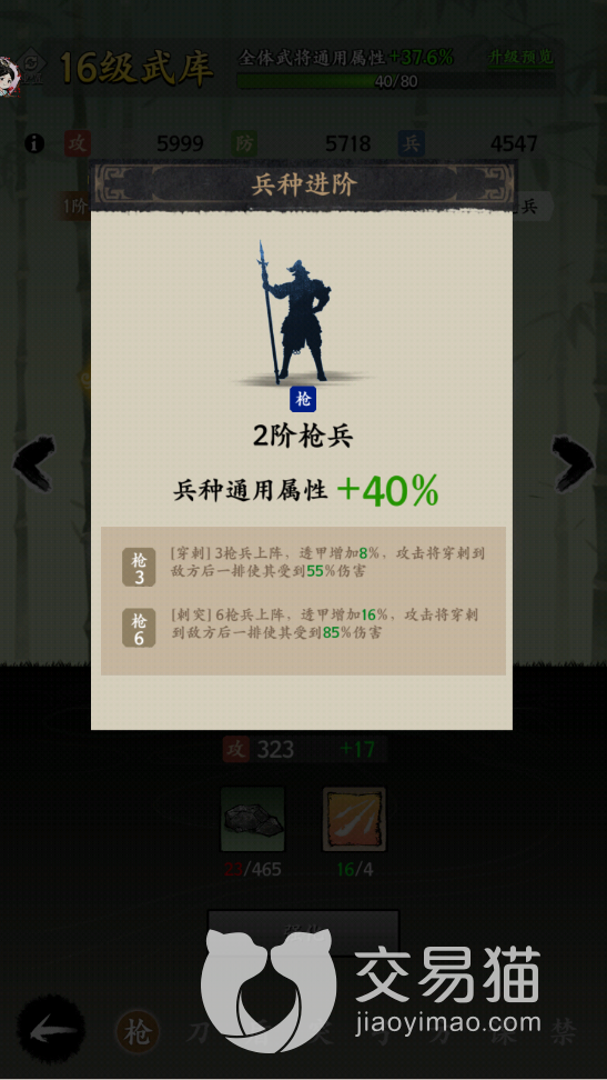 所以大家要想升级成为二阶兵种,不仅是株钱要准备足够,就连军功道具,也要通过副本准备齐全,最主要的是角色等级要平稳上升,在升阶之后大家就可以在武库中看到每一个兵种,不同的阶级带来的增益效果是什么样的啦。