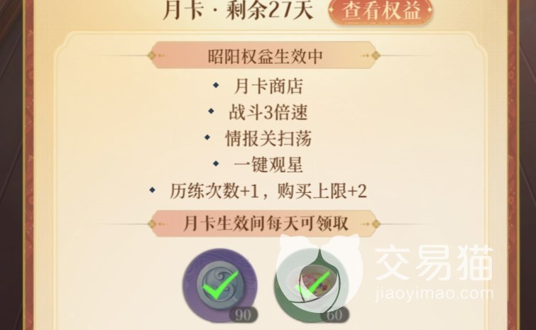 月卡/基金,小月卡直升昭阳每天都能领到90的白金币和60体力。然后是成长基金,这个属于一次性投资长期享受,到达相应的爵位之后就能获取白金币,45级的时候有1500呢!累计算下来是成本的10倍返利。