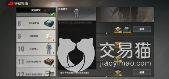 另外一种可以获得人物皮肤的方式就是升级获得,如果选择这一种方式的话,主要就是在主页面里面可以看到行动指南任务图标,点进去以后就能够了解升级任务的奖励,如果想要获得皮肤,一般是到了10级以后,就可以得到先遣特工皮肤。