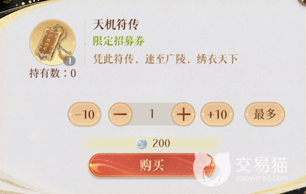 至于天机符传这个是用来抽限定池角色,例如当期的是孙权和孙尚香的概率up池。天机符传最直接的获取方式就是用白金币购买,除此之外获取途径就比较少了。眼下能获得天机符传的活动有地宫探秘,累计获得古玉达到一定数量可以得到该道具。用2000青玉匣也能在兑换商店里兑换,库存10个。