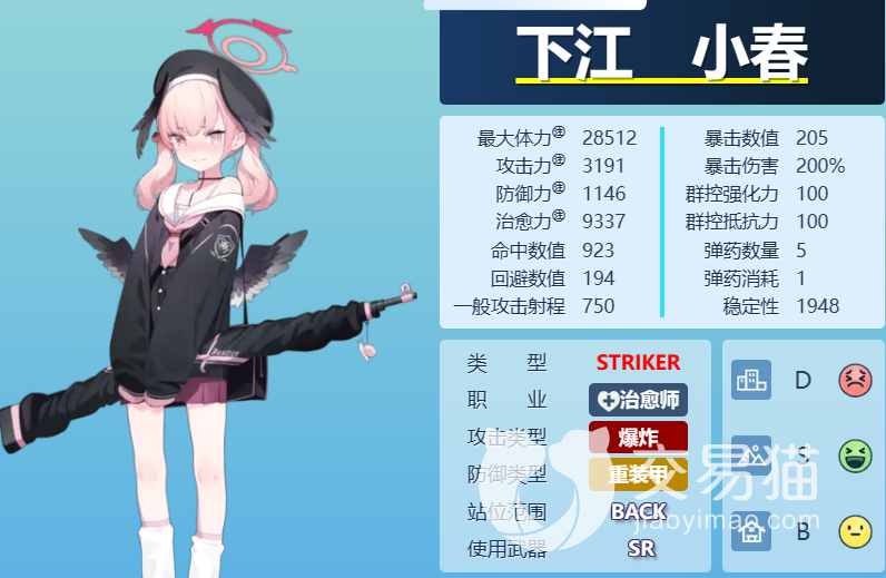 以一张神图火出圈的下江小春被玩家们一致认为是游戏中当之无愧的萌王。小春是三一学院补习社的成员,游戏中的定位是三星回复学生,但也有着不俗的输出。擅长室内战和户外战,在城镇战中的表现一般。喜欢下江小春的玩家们大多是喜欢小春可爱的外表和内向文静的性格,对话时害羞的神情和粉粉的瞳色以及发色非常适配。