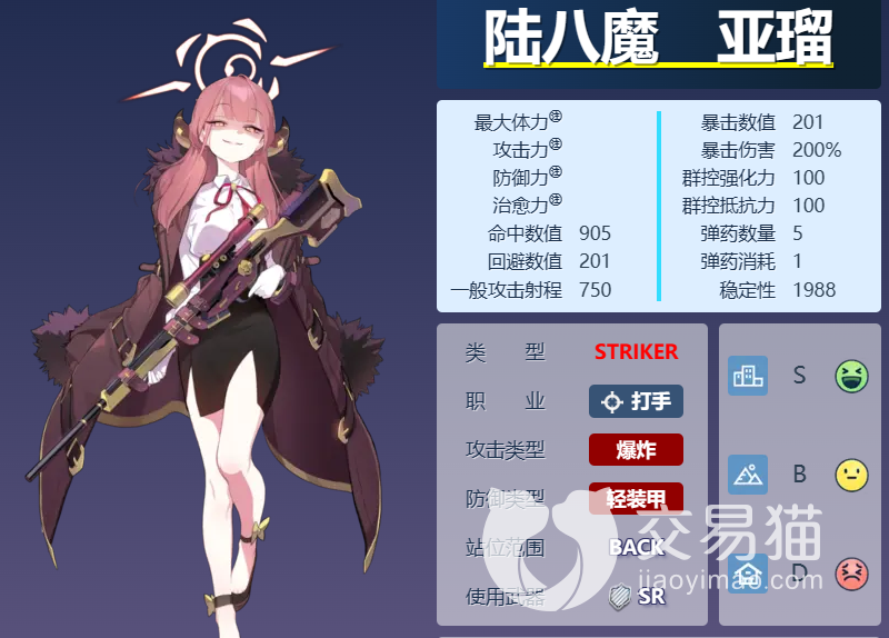 作为一名便利屋的社长,阿露包括自己在内的四名成员都安排了职位。阿露这名学生的萌点在于,虽然是号称“只要给钱什么都能做”的社团老大,阿露却和形象上的冷静腹黑完全不同,实际上的阿露是一个行事粗心大意的可爱小女孩,并且非常关心自己的社团成员。除了角色塑造方面,阿露在游戏中的整体强度也非常之高,绝对秒杀的单兵作战能力再加上AOE伤害可以说是无比的强劲。