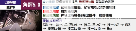 至于配队问题,朱音(兔女郎)能适配的队伍非常多,基本上前排一坦三输出,后排一治疗的队伍就能很好的容纳朱音(兔女郎),前排两坦两输出的情况下,她也能在后排补充一定数额的输出。