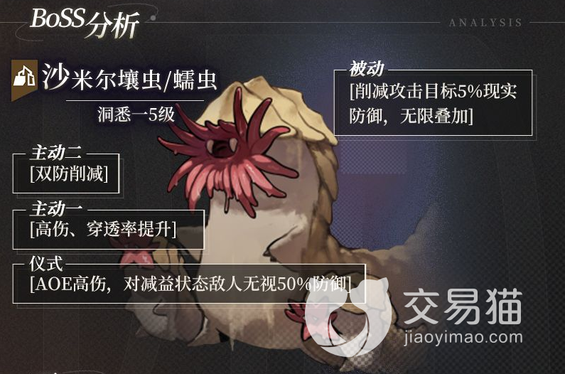 这个地方的角色外观并不会刻画的太恐怖,但它们依旧会在原有的基础上做出一定的改变。此处的沙虫其中一个技能是会减双抗的,还有个是可以产生高额伤害,同时会提升技能的穿透效果,也就是增伤了。