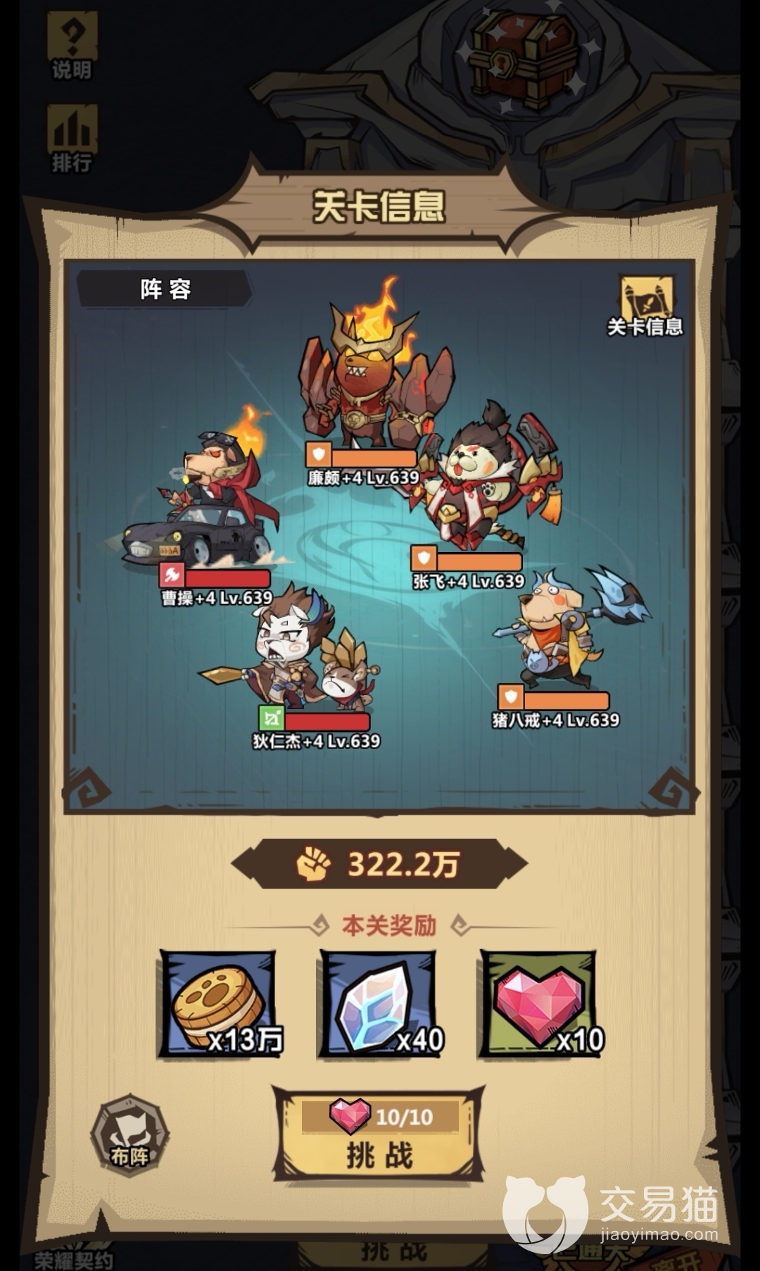 站在后排的武则天、蔡文姬以及关羽是法师+辅助+坦克的组合,也是专门为了应对160层守卫的搭配,这三只狗狗英雄能够打出不错的伤害,武则天的控制可以牵制住敌方的曹操,蔡文姬的回血与增益能够帮助己方队伍进行长时间的持续性输出。