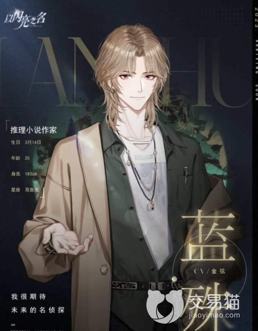 蓝殊是一位男性角色,也是可以进行攻略的,他的长相帅气,身份是一位推理小说家。人生就好像是自己写的小说,存在着很多的谜团。一开始接触这个游戏就需要不断的去解开他身边的谜团,当将这个谜团解开之后,发现还有更大的秘密在其中。因此,这个角色的身份还需要确定,身后的谜团还需要更加深层的探索,可谓是神秘感十足了。