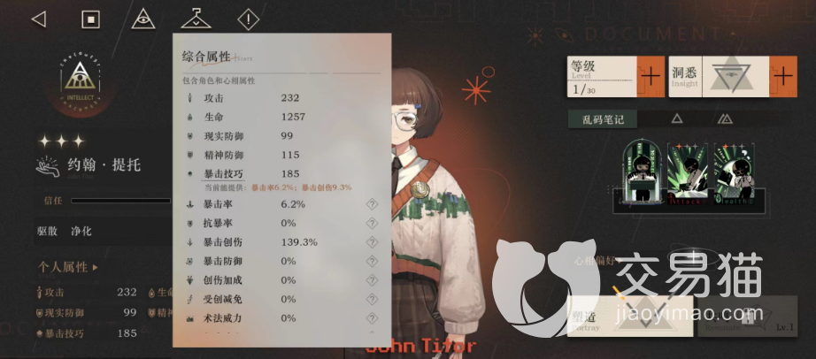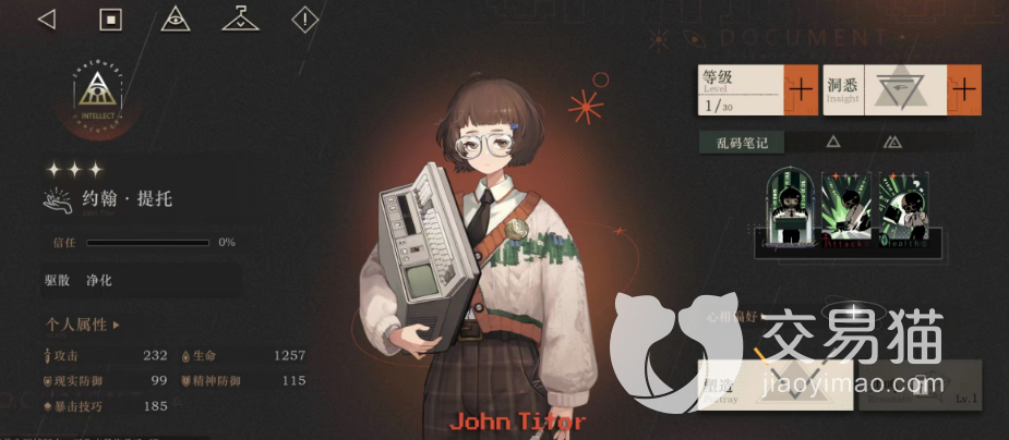 约翰提托,在游戏中的确稀有度不高,是三星级别的智慧属性角色,打的是一手现实创伤伤害,在游戏中定位算是一个偏辅助类型的角色。虽然只有三星,但角色的技能本身方面却相当优秀,拥有着解除和自我治疗的能力,可以作为前中期的开荒角色使用。