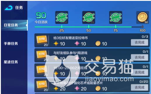 在激战亚拉特中,有很多日常任务、手册任务、星途任务,玩家可以选择适合自己的任务领取,完成任务后能够得到经验值和奖励。除此之外,每天还有关于活跃度的任务,玩家达成指定的要求之后,就能得到活跃度的奖励了。