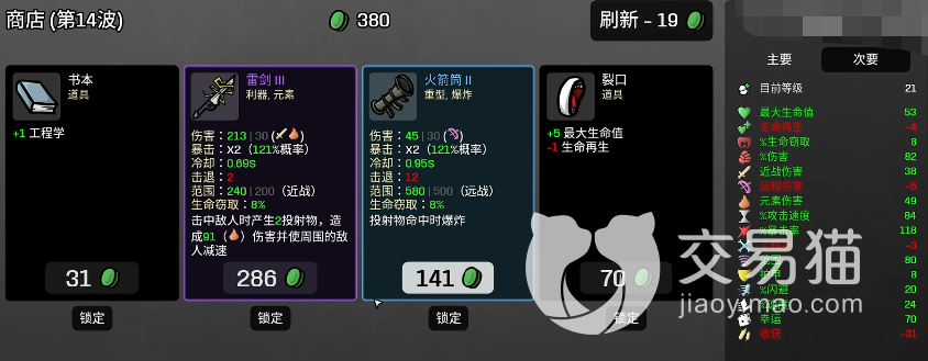 同时它的效果还是能够进行叠加的,并且只会占你们一个格子的空间,完成层数叠加的武器你们能够收获到更为显著的加成效果。到时候再进入商店中,就能直接一次性提升等多武器的等级了,这样角色获取到的增益也是翻倍的。