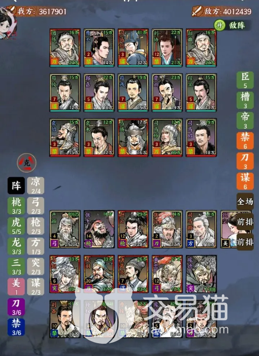 当然,在实际的战斗中,想要凑齐上述的武将阵容多少还是有些困难的,因此如果在羁绊并没凑够的情况下,部分比较强势的单独武将是要优先拿到手的。首先就是这套阵容的核心武将曹操,他的技能可以造成敌方溃逃,将他配置在前排可以很容易控制住对面,形成人多打人少的顺风局势;其次老将严颜也是前期必选的一张卡,他的主要作用是放在前排送人头,只要严颜倒下,不但可以给对面减防,同时还能给友军上防御增加的buff,十分适合长期作战。