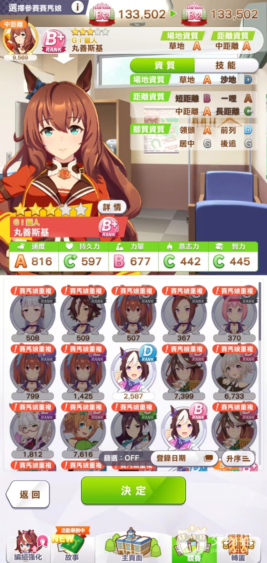 一般短距离都会放樱花蓦进王和帝王光辉,第3个位置如果放小栗帽或者大树快车的话,沙地又会不够人数,所以在没有其他更好选择的情况下,可以把丸善斯基放在短距离的位置。