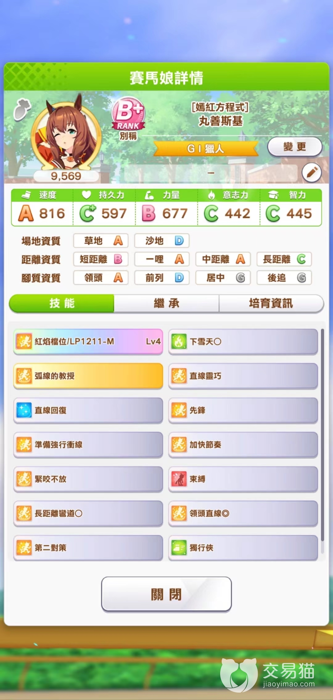 丸善斯基的短距离资质为B,只要继承1个短距离因子就可以提升到A。如果自己的队伍中缺少短距离角色的话可以考虑培养一个专门跑短距离的丸善斯基。