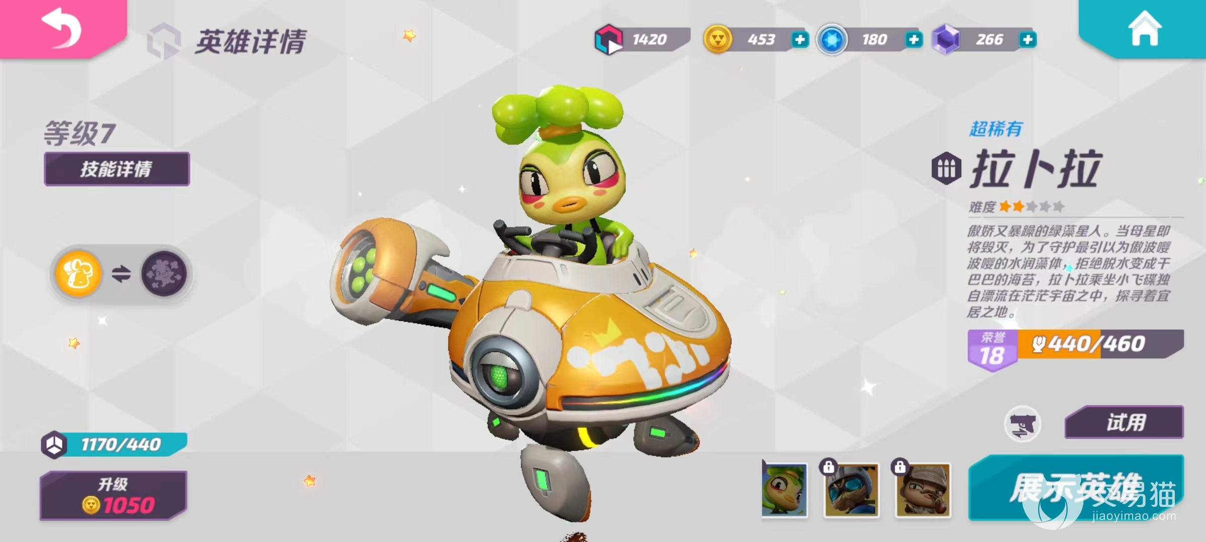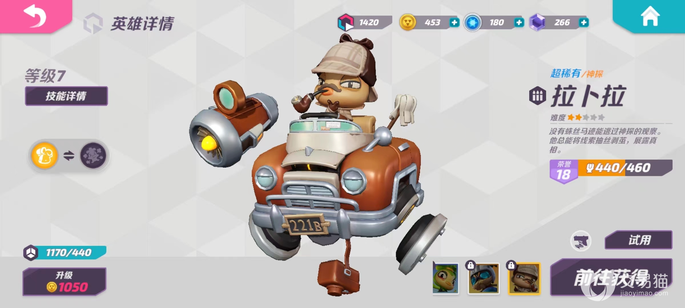 这款皮肤的外形算是比较搞怪的了:拉卜拉矮小的身材坐在一个类似老爷车的小飞碟内,戴着憨厚鸭舌帽的同时嘴里还叼着一个老式烟斗,这憨态可掬的小表情实在是太逗趣了。