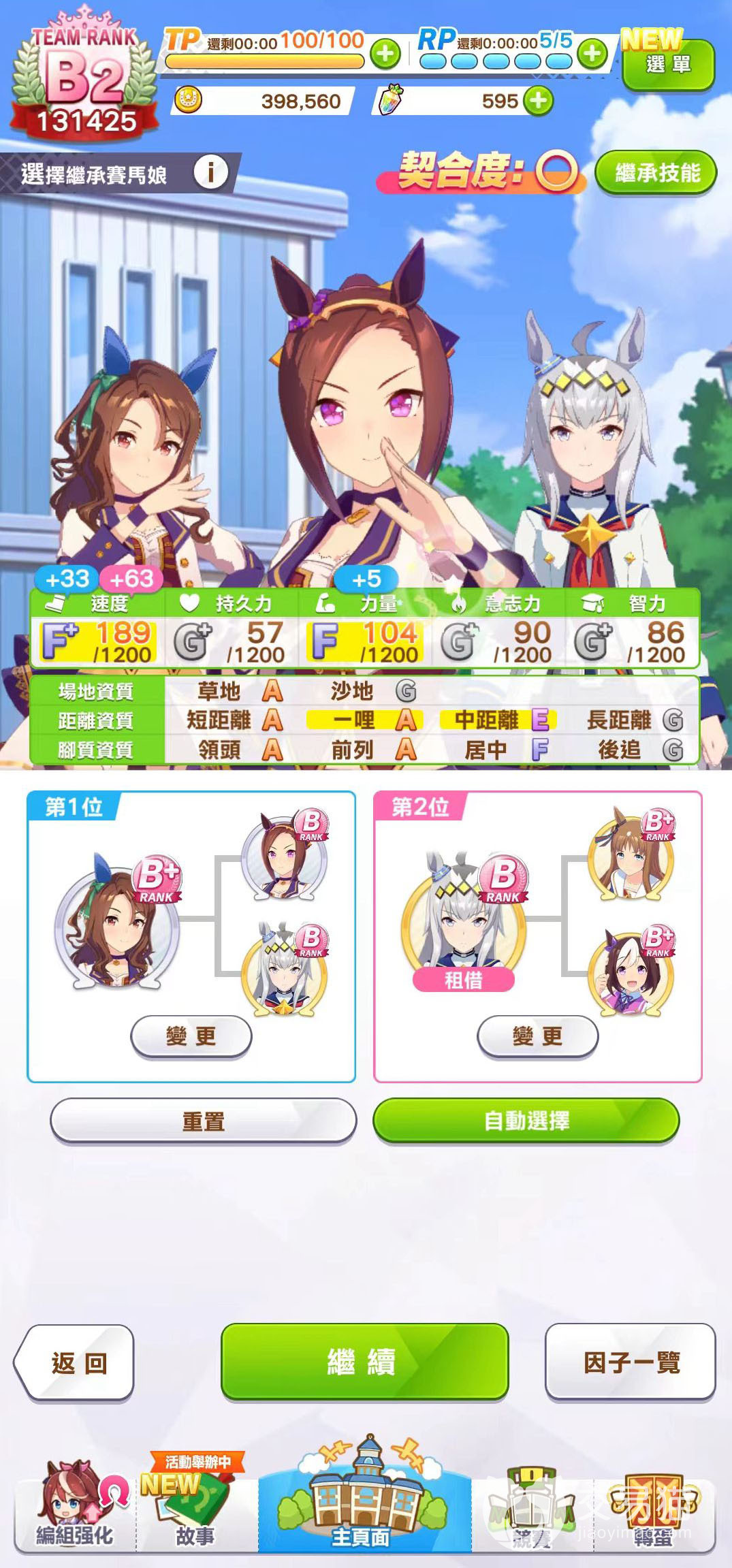 最好是有满突的北部玄驹或者双涡轮,但这两张卡刚开服的时候还没有实装。现有SSR速卡和满凸SR速卡也够用,但评级可能没法达到很高。