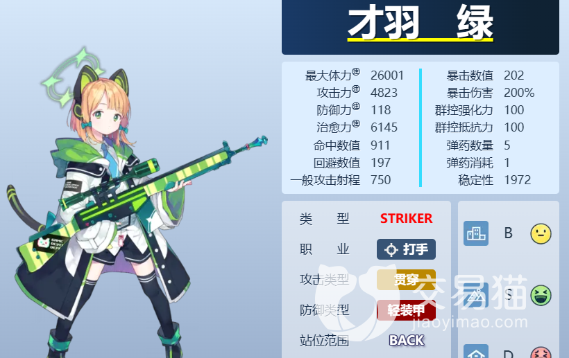 接着是双胞胎中的妹妹三星角色才羽绿,她的攻击属性和姐姐一样,都是贯穿属性的打手,不同的是才羽绿在应对城镇战时并没有伤害加成。