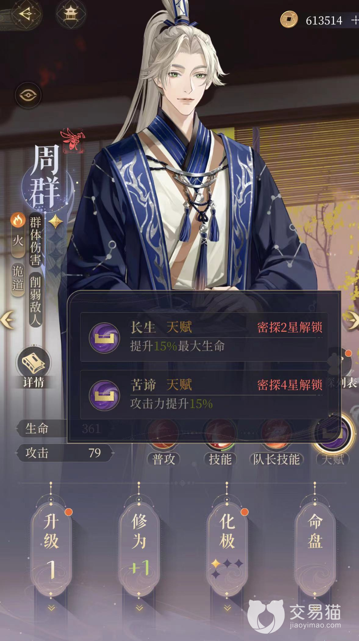 天赋:长生天赋提升15%的最大生命值,苦谛天赋提升15%的攻击力。