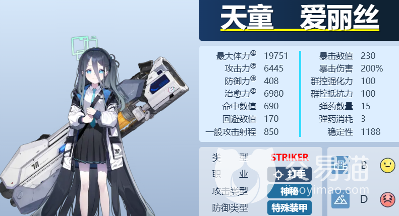 并且天童爱丽丝的主要输出渠道还是EX技能造成AOE伤害,整个角色机制弊端在于需要高练度高技能等级才能打出惊天伤害,需要固定时间充能和弹道预判的玩法对在游戏中喜欢开auto自动打怪的玩家们非常不友好,在泛用性上比神秘狙逊色不少。