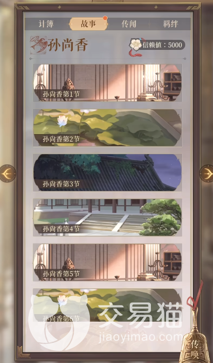 首先,玩家从限定卡池获得孙尚香角色,并通过赠送礼物、收集传闻等方式,提升她的信赖值,就可以开启一共12节的孙尚香故事,了解关于广陵王妃的传闻剧情。