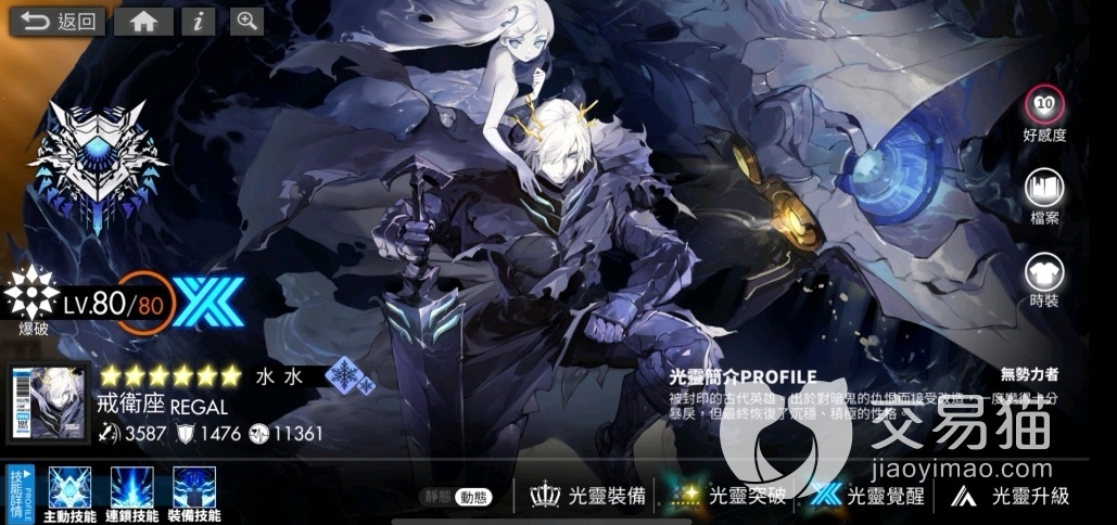 游戏里禁卫座的职业定位是爆破,在各方面属性中,他的爆破属性是尤为突出,攻击力也是很高的,他在八十级10装备10好感度的情况下,战斗力达到了3587,比镇魂座要高上许多,他平A与连锁技能都是十分厉害的,不得不说,禁卫座的确特别适合当队长。