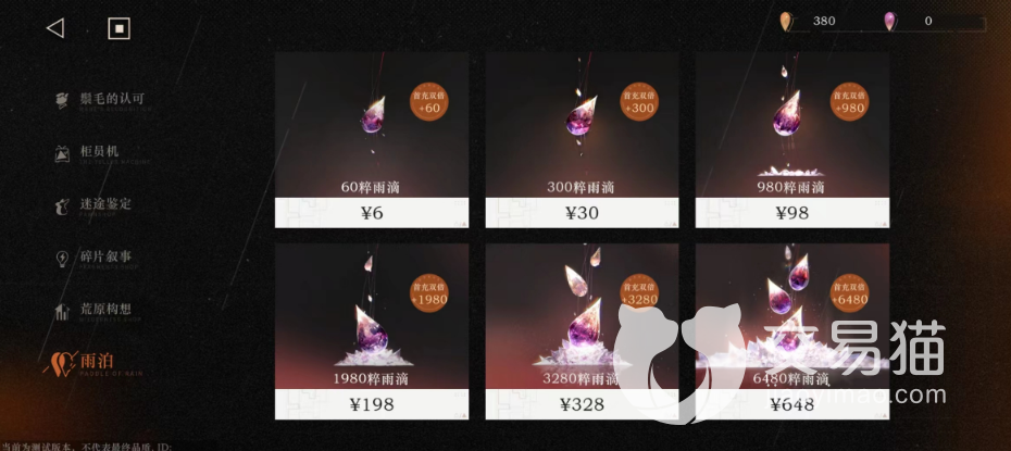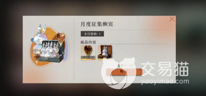 这是在内测时期出现的大月卡,一月一次。玩家们可以在这个礼包中获得1800左右的普通雨滴和一次十连彩兔子抽卡券,换算下来玩家们可以获得20抽。按照大月卡价格168计算,大概每抽只相当于花费8.4,整体价格在抽卡方面算是最低的那一档。