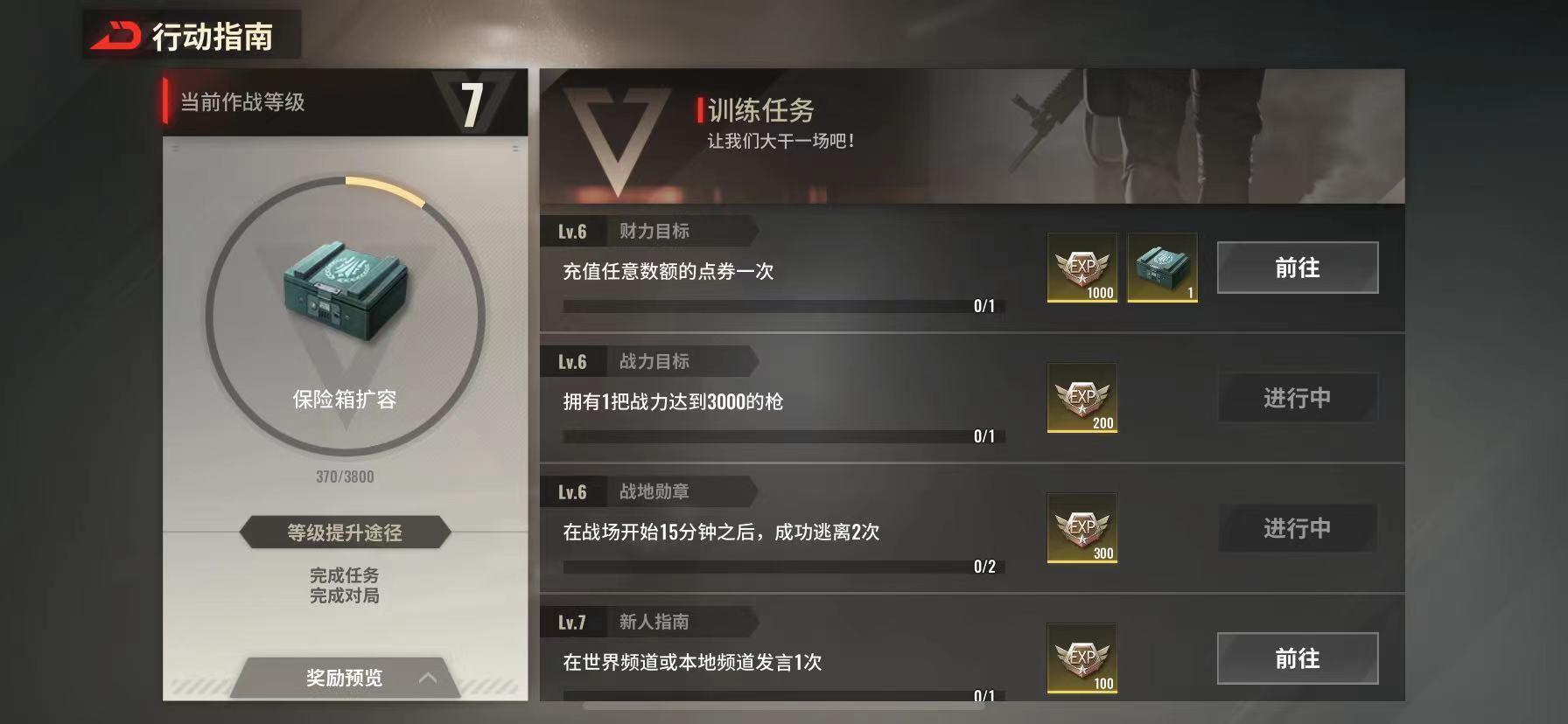 因此你们如果想要获取这个东西,那么首先就要将新手任务都做完,这样才能将其解锁。今日有关超凡先锋怎么解锁第一个保险箱的内容就到此结束了,希望能够帮助到各位小伙伴们。