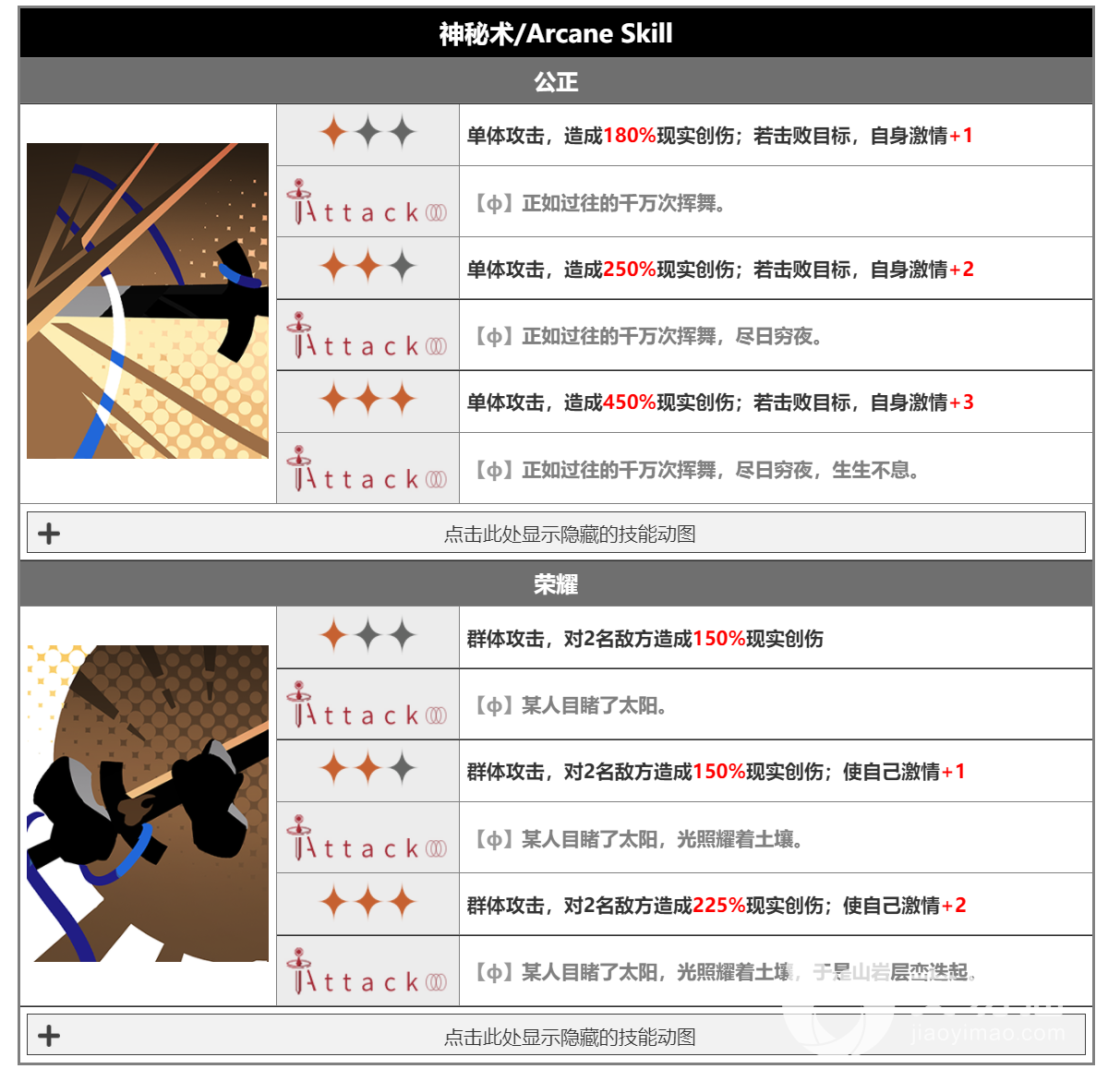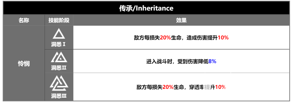 未锈铠的群攻暴击和单体收割都可以回能,在游戏前期,可用2阶或3阶的荣耀补充激情点,在使用完自己的终极仪式后,自身的创伤加成得到显著提升,此时收割回复激情点更快。未锈铠的收益随着练度的提升不断增加,只有不断提高练度,才能更好触发自身的机制。