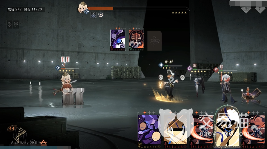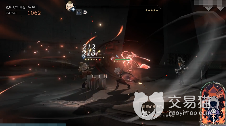 因为这关boss 的伤害太高,只有奶妈才能源源不断的提供充足的保护,有苏芙比的话是最好的,没有的话用前面送的四星角色“APPLe”代替也可以。另外输出这块可以用输出频率和上限都极高的“未锈铠”去打,当然,没它的话也可以选择用”弄臣”技能中的腐蚀去慢慢磨死boss,不过这样玩的话,完美通关的“八回合之内战胜敌人”这一条件肯定是达不到了。