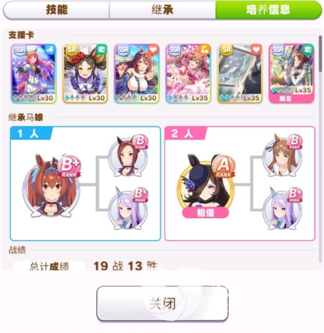 种马大家可以带上一个一星的因子码,要是运气好一点的,还可以换成好因子,平民玩家也可以直接用一星的也行,然后再带上6 耐和3速马,之所以选择6个耐力,主要是要是跑有马或者是天皇赏春的话,消耗耐力非常多,所以需要多带上一些,还有支援卡的话,大家可以根据上图来进行搭配就可以了,这套搭配方法性价比非常的高,平民玩家也能很容易获得,推荐大家可以尝试一下。