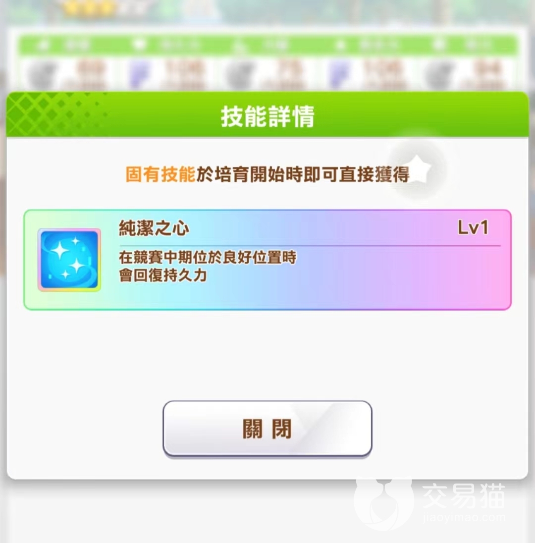 超级小溪的固有技能是回复持久力的技能,固有技能的发动条件是在竞赛中盘取得好位置,选择前列作战的话就比较容易发动。