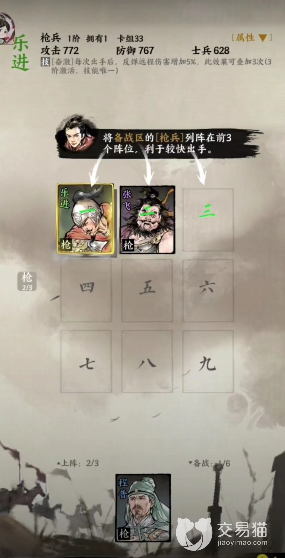 其实魏盾三足阵容可以说是很肉了,拥有巨额的反伤能力,尤其是在和骑兵军团正面对战的时候,往往能够不战而胜,不过整体的攻击力是很薄弱的,这样的话,在防守的阶段就不适合利用这个阵容,倒是很适合用于反制五虎凉太郎的进攻,在这款游戏里面,面对不同的敌人是需要发配出不同的阵容的,这样的话才能够有针对性的去对敌人进行攻击,获得的胜率也比较高。