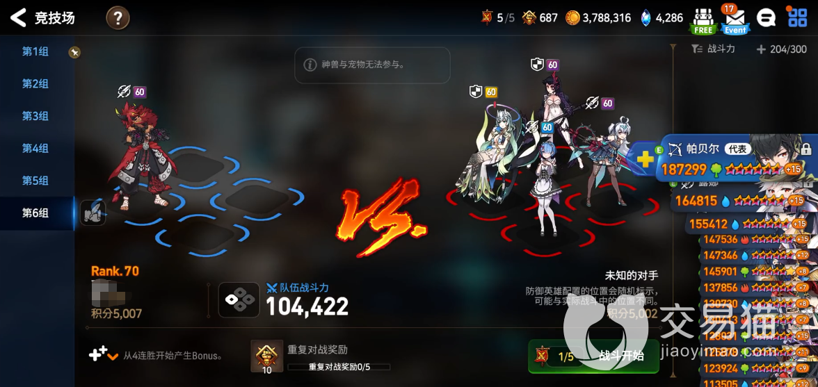 2、世界竞技场:这个模式也被叫做RTC,正如世界竞技场这个名字一样,它是匹配玩家进行实时对战的模式,因为的全称叫做“Real Time Attack”。由于是世界级别的战斗,因此一般二到三个月才计算一个赛季。